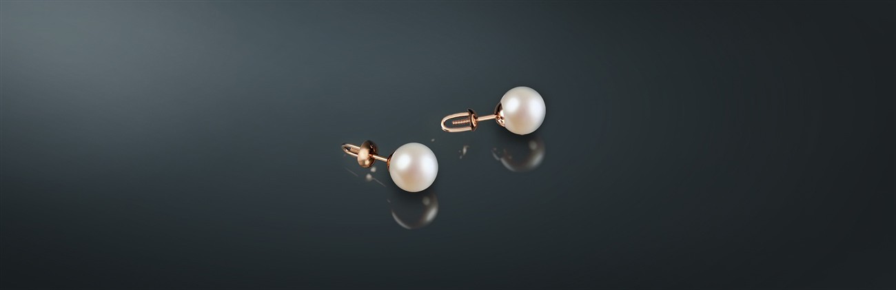 Серьги-пусеты с белым морским жемчугом Акойя, на винтовом замке из золота 585˚.
